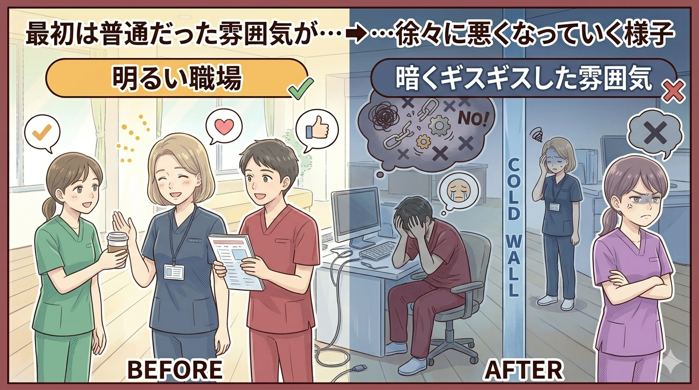 さらに進むと、職場の空気が明らかに変わります。